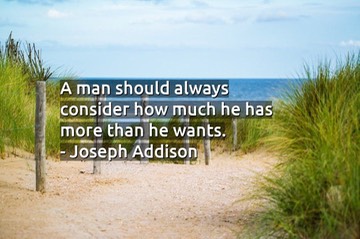 "A man should always consider how much he has more than he wants." - Joseph Addison