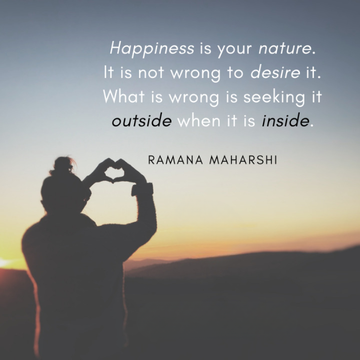 "Happiness is your nature. It is not wrong to desire it. What is wrong is seeking it outside when it is inside." - Ramana Maharshi