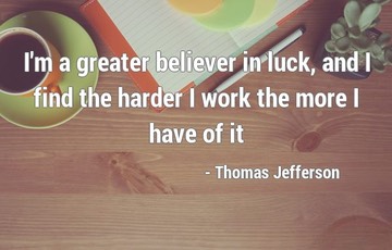 “I’m a greater believer in luck, and I find the harder I work the more I have of it.” — Thomas Jefferson