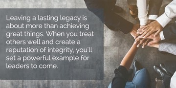 “Leaving a lasting legacy is about more than achieving great things. When you treat others well and create a reputation of integrity, you'll set a powerful example for leaders to come.