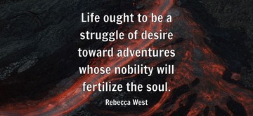 "Life ought to be a struggle of desire toward adventures whose nobility will fertilize the soul." - Rebecca West