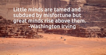 "Little minds are tamed and subdued by misfortune; but great minds rise above them." - Washington Irving