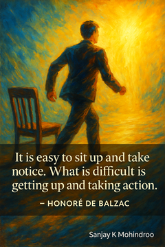 “It is easy to sit up and take notice. What is difficult is getting up and taking action.” Honore de Balzac’s words cut straight through. Most people see what’s wrong. Most people know what should be done. Yet few take the step that matters—action. #Leadership #Mindset