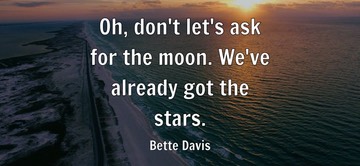 "Oh, don't let's ask for the moon. We've already got the stars." - Bette Davis.