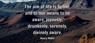 "The aim of life is to live, and to live means to be aware, joyously, drunkenly, serenely, divinely aware." - Henry Miller.