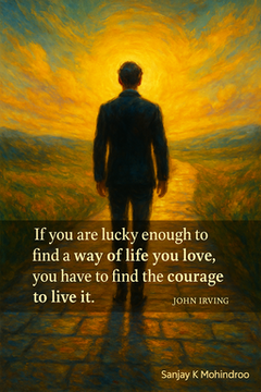 “If you are lucky enough to find a way of life you love, you have to find the courage to live it.” John Irving’s words are both inspiring and sobering. Finding what you love is a gift. Living it fully is a challenge. #Mindset #Inspiration