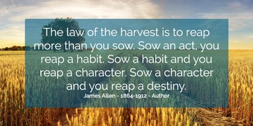 “The law of the harvest is to reap more than you sow. Sow an act, you reap a habit. Sow a habit and you reap a character. Sow a character and you reap a destiny.” - James Allen