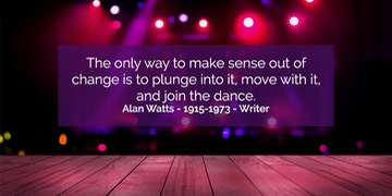 “The only way to make sense out of change is to plunge into it, move with it, and join the dance.”  - Alan Watts.
