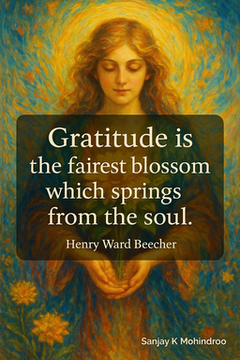 At its heart, this force is gratitude. Not the kind you practice on autopilot, tossing out polite thanks, but the kind that springs naturally when the soul recognizes value. Gratitude has the power to reframe challenges into lessons, relationships into treasures, and life into an unfolding gift. It is a blossom that reveals who we are at our core—our ability to pause, notice, and honour the good in front of us. #Gratitude #Soul