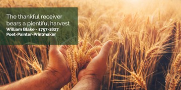 “The thankful receiver bears a plentiful harvest.” - William Blake.