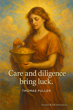 There is a short but sharp line by Thomas Fuller: “Care and diligence bring luck.” It carries a calm punch. It cuts through the noise. It reminds us that luck is less magic and more effort. The feeling behind the quote is steady. It says luck is not a stranger. It shows up when your work holds care and your effort is steady.