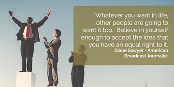 “Whatever you want in life, other people are going to want it too.  Believe in yourself enough to accept the idea that you have an equal right to it.” - Diane Sawyer.